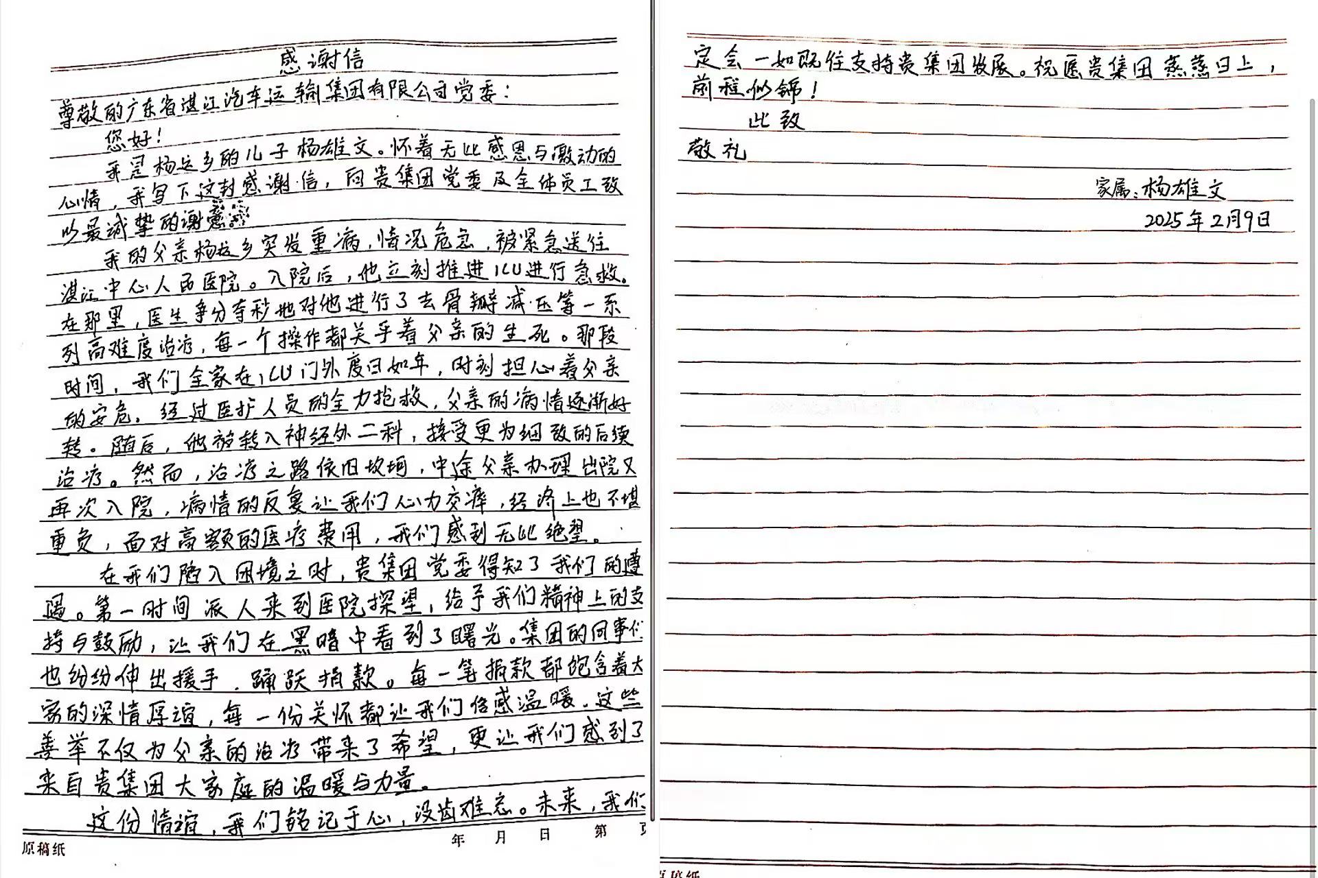 這一份份堆積起的善意和期盼,讓楊運鄉及其家屬在困境中感受到了組織的關懷和同事間的溫暖,令其感動萬分。這一善舉,不僅展現了湛汽人團結互助精神,更為楊運鄉同志撐起與病魔抗爭的勇氣,建立起重獲健康的信心。