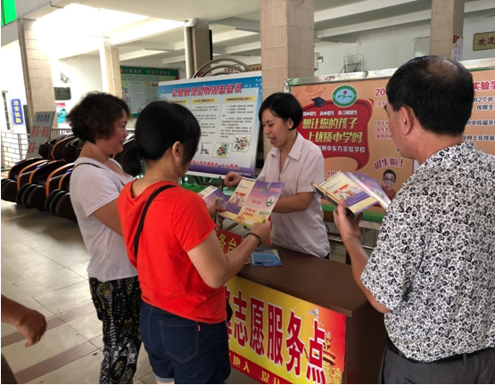 工作人員正在給旅客派發和講解禁毒宣傳單
