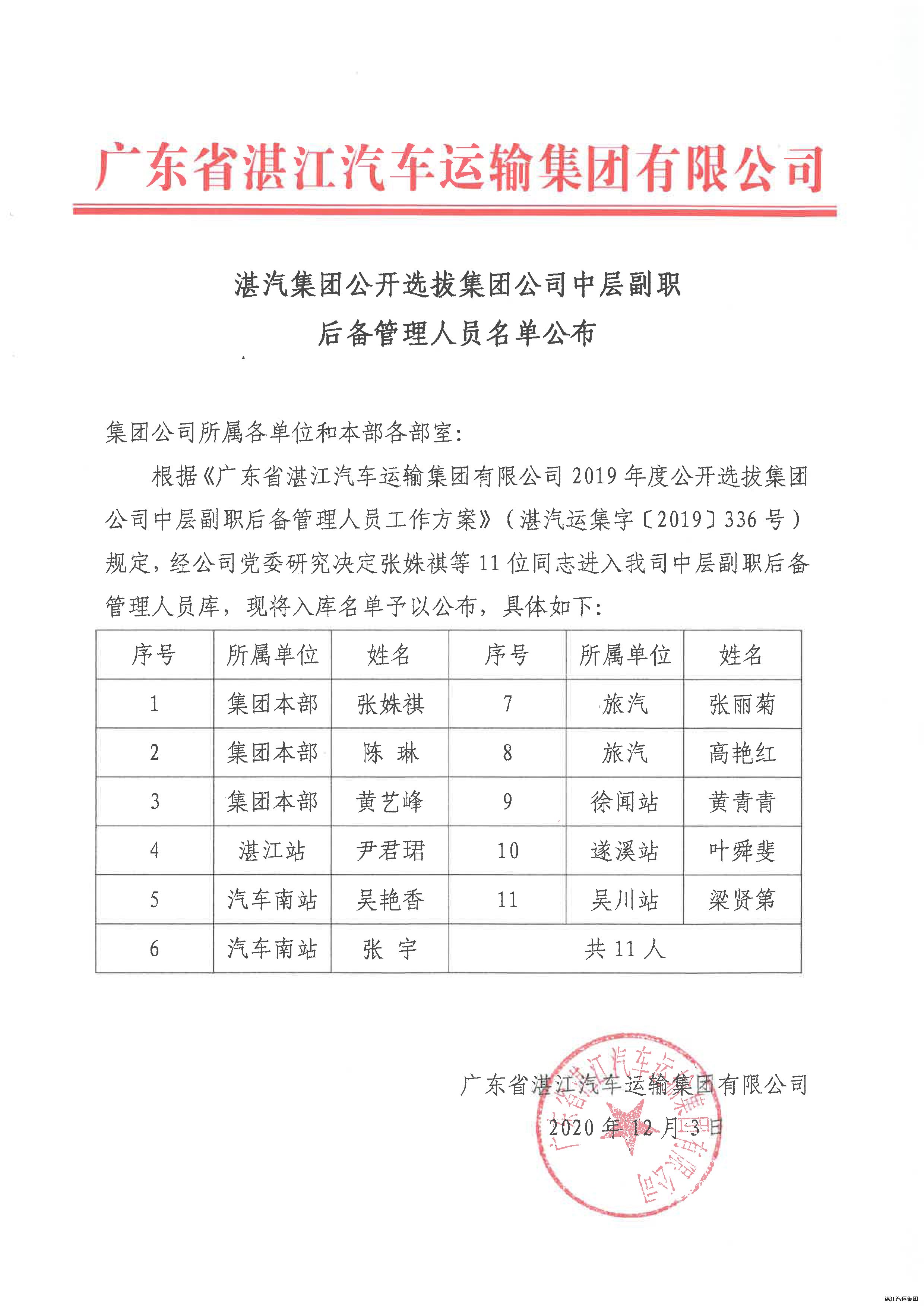 湛汽集團公開選拔集團公司中層副職后備管理人員名單公布